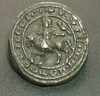 Pièce de monnaie commune à Thouzon. Il s'agit d'un "patac" pontifical (côté face).