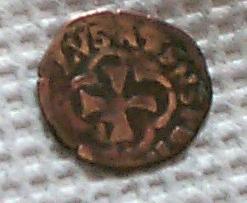 Pièce de monnaie commune à Thouzon. Il s'agit d'un "patac" pontifical (côté pile).