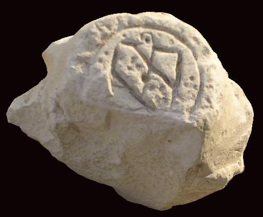 Petit blason en pierre de 2,5 cm (probablement une matrice de sceau).